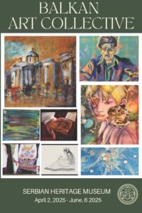 Join us for an inspiring celebration of art and culture at the Serbian Heritage Museum as we present the Balkan Art Collective—a captivating exhibition showcasing a diverse collection of artworks from talented artists of Serbian and Balkan descent. Explore a vibrant array of paintings, photography, and mixed media that reflect the rich heritage and contemporary experiences of the Serbian / Balkan region. This exhibition is an opportunity to engage with the stories behind each artwork and to connect with the artists who bring these narratives to life.